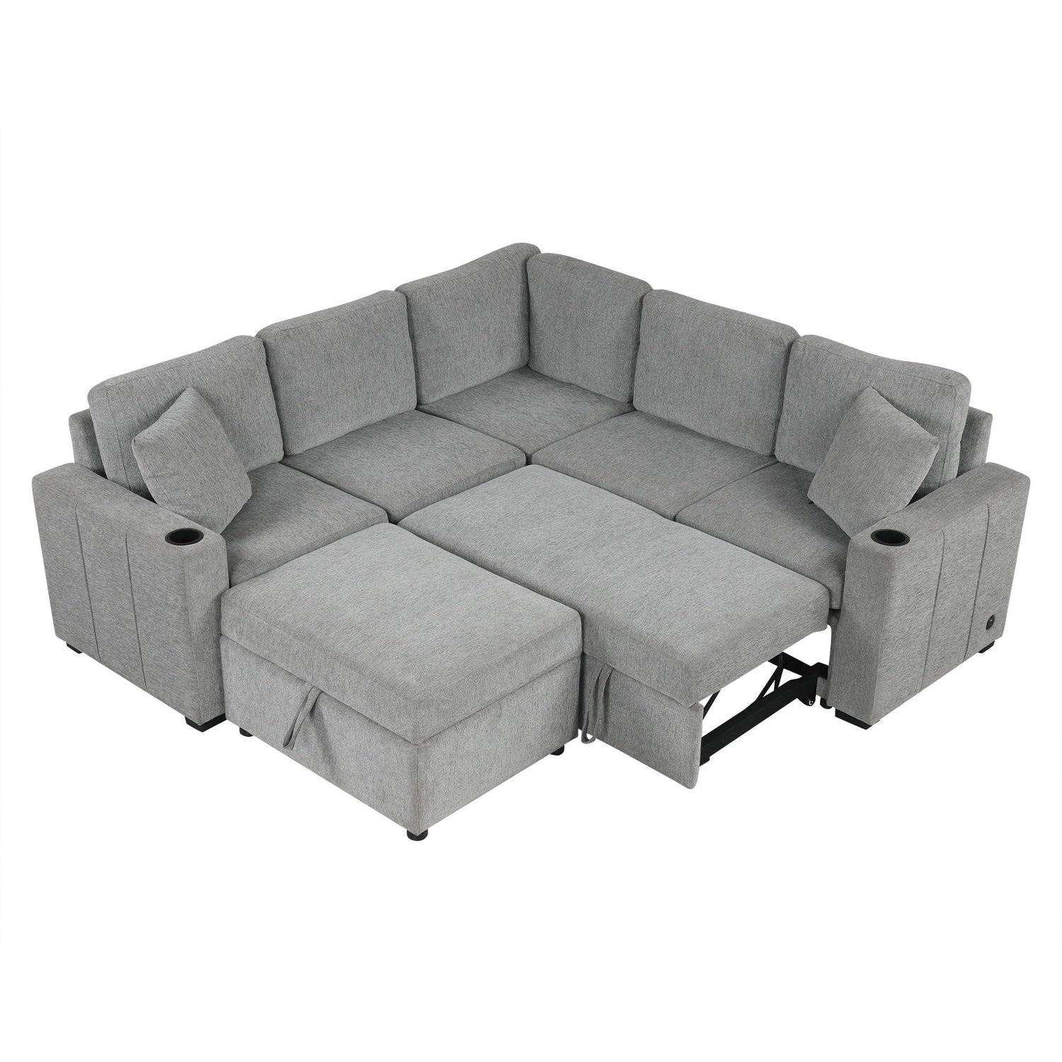 Sectional Sofa Convertible Pull-Out Sofa Bed With A Movable Storage Ottoman For Living Room
