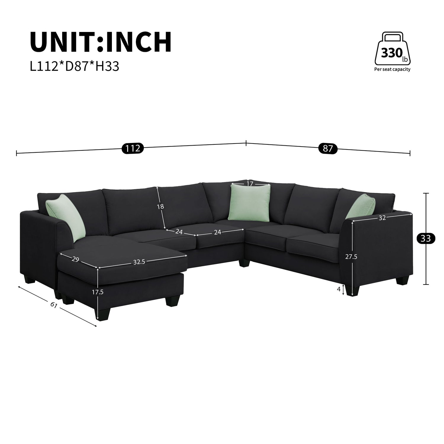 Sectional Sofa Couches Living Room Sets, 7 Seats Modular Sectional Sofa With Ottoman, L Shape Fabric Sofa Corner Couch Set With 3 Pillows - Black is backordered and will ship as soon as it is back in stock.