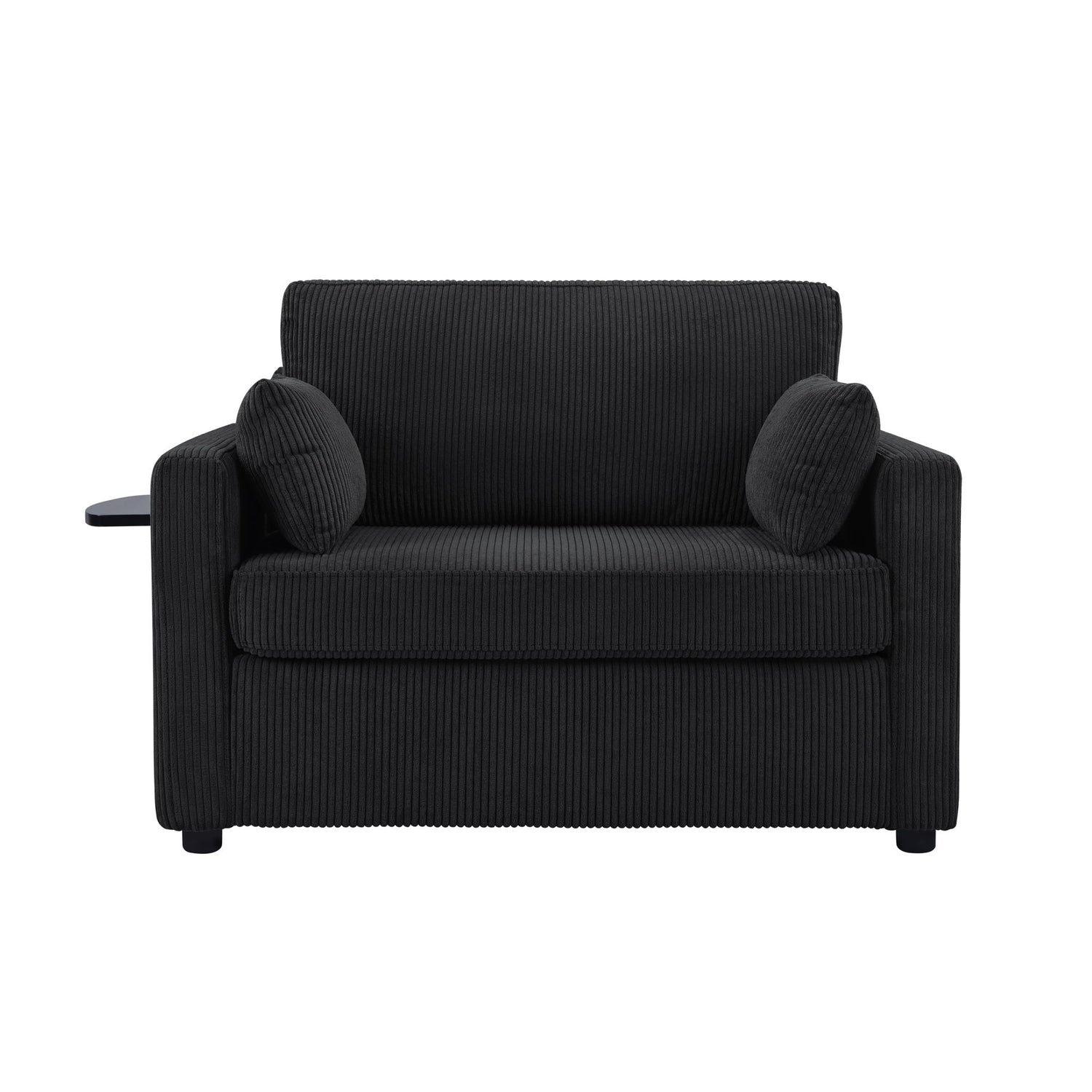 Twin Size Sofa Bed Sleeper Sofa Loveseat With Foldable Mattress, Side Table, Storage Pocket, USB Ports - Black