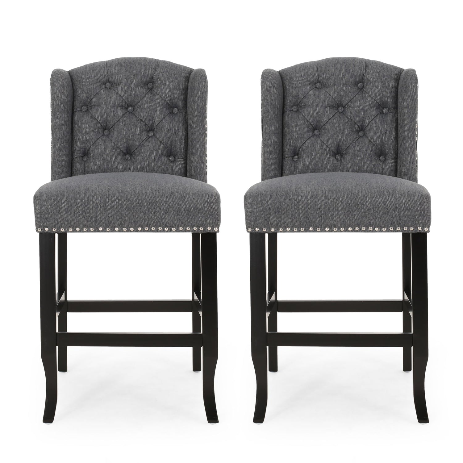 Vienna - Contemporary Fabric Tufted Wingback 27" Counter Stools, (Set of 2) - Charcoal / Dark Brown