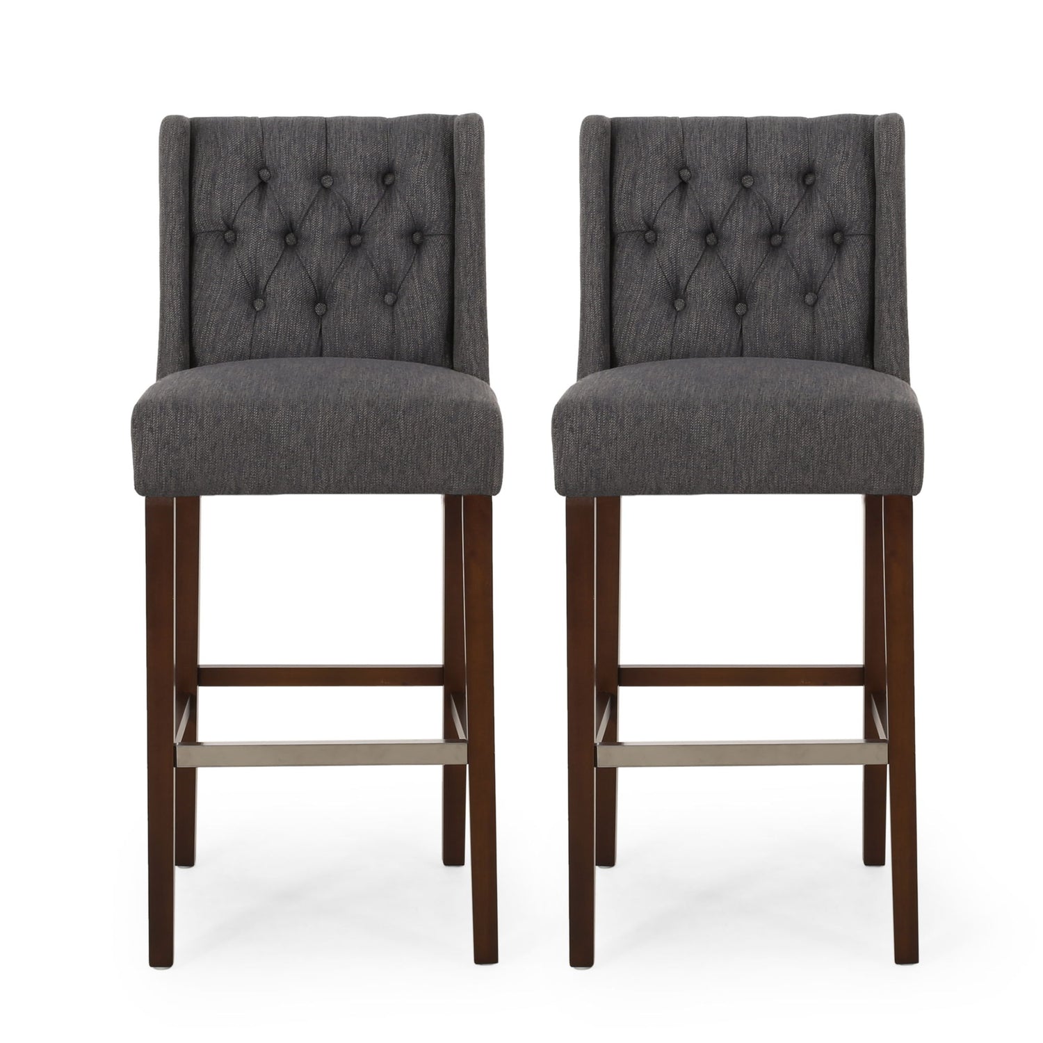 Solstara - Upholstered Fabric Dining Barstool With Button Tufted And Wing Back - Charcoal