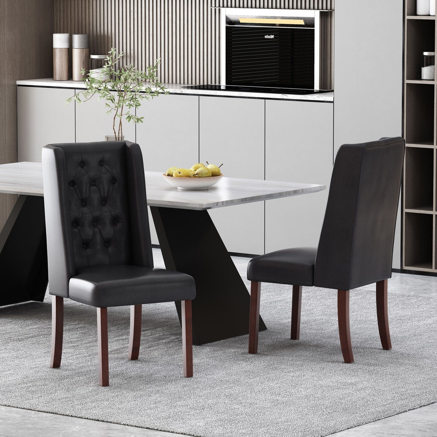Sophisticated Tufted Dining Chair Set With High Back Design - Black