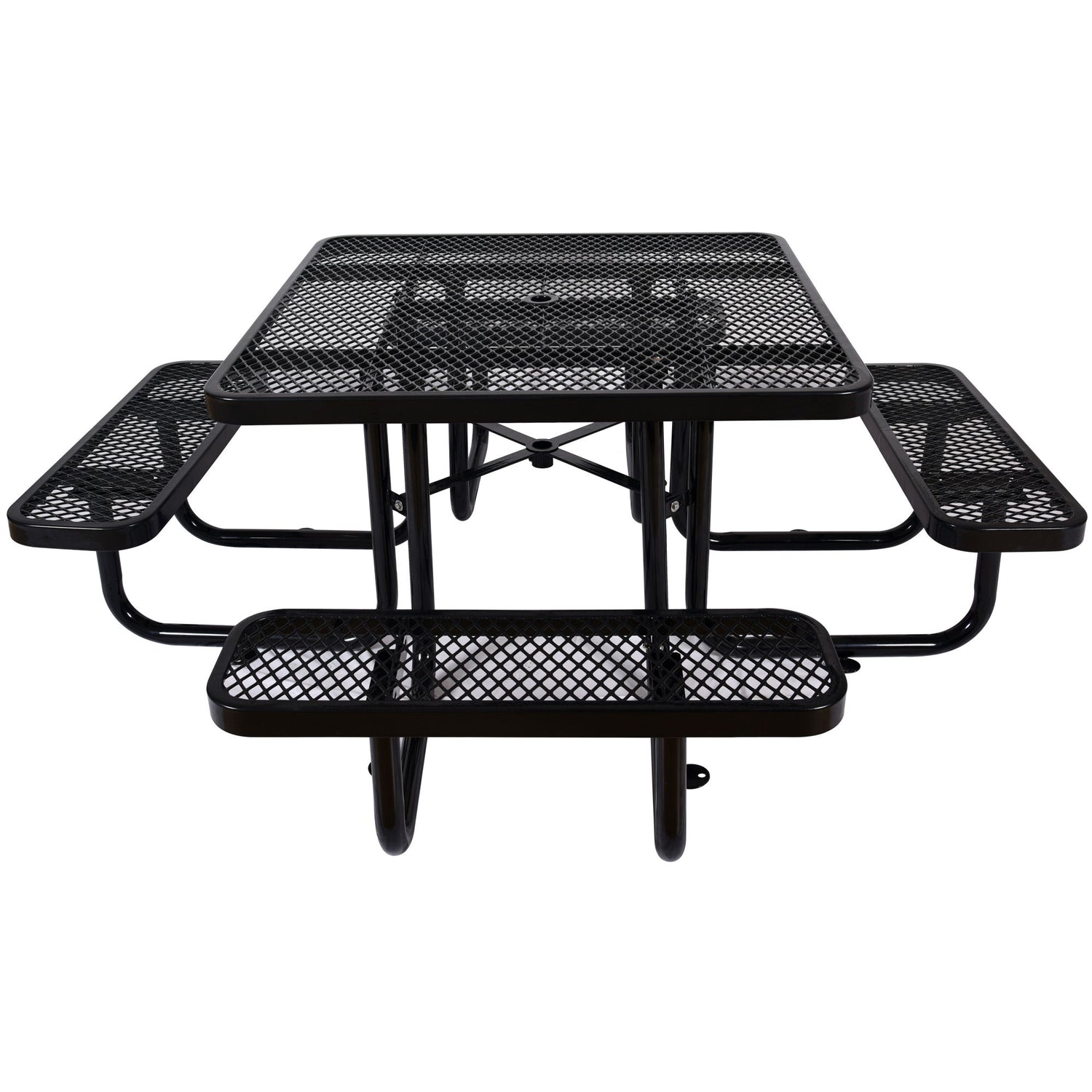 Square Outdoor Steel Picnic Table, With Umbrella Pole - Black