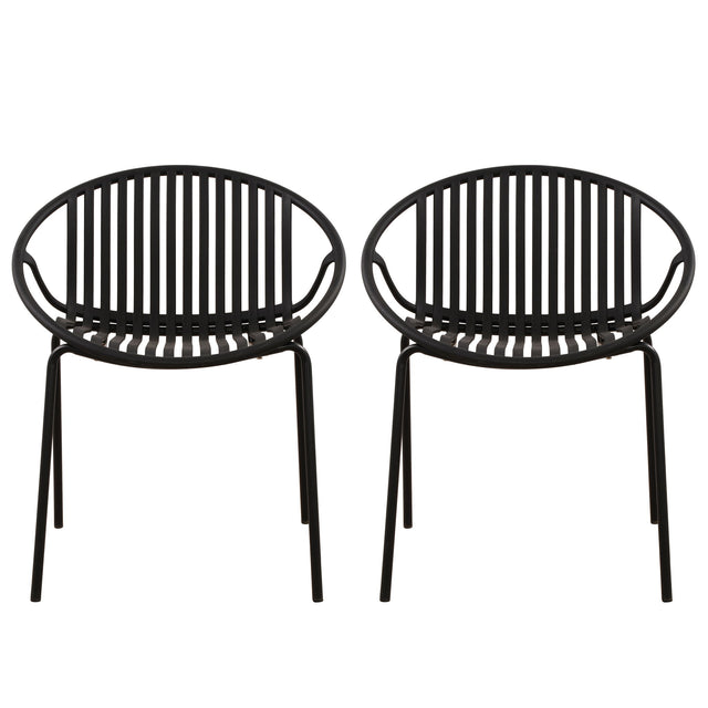 Modern Simple Art Style Patio Dining Chairs With Breathable Design, Metal Legs And Plastic Backrest (Set of 2) - Black