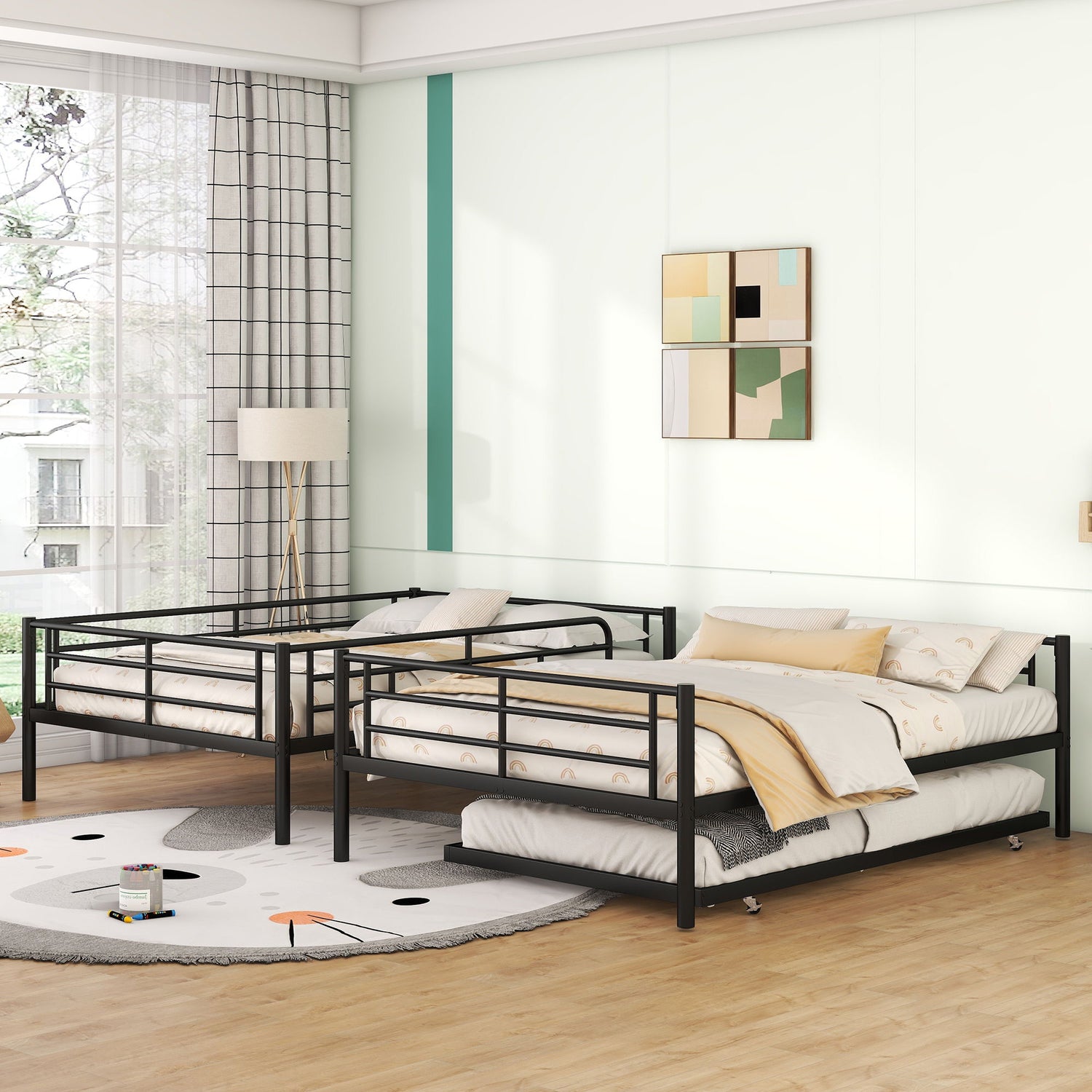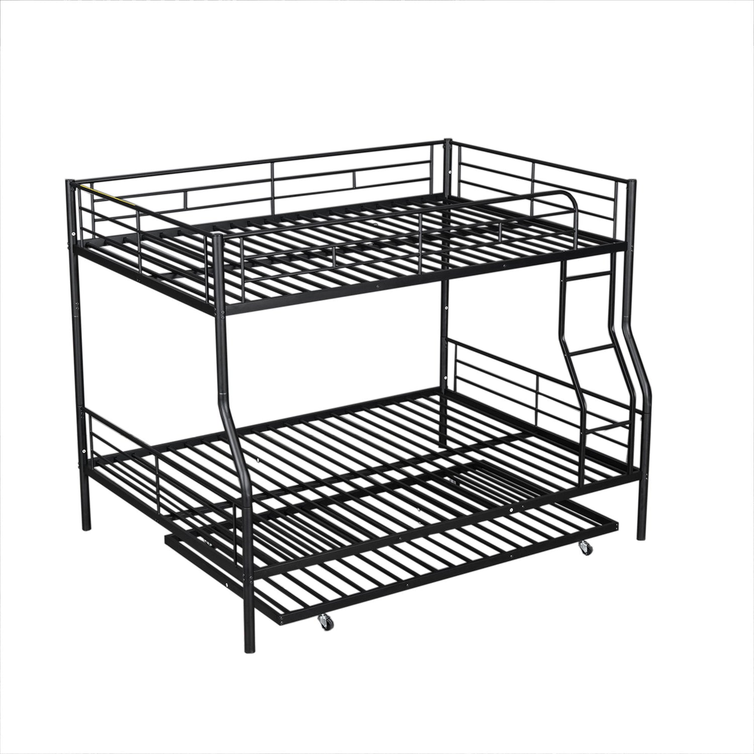Full Over Full Metal Bunk Bed With Trundle - Black