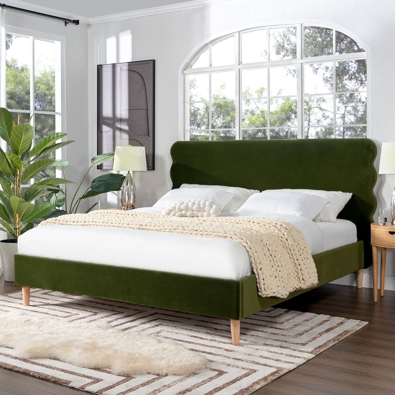 Stockholm - Queen Modern Wavy Headboard Platform Bed - Olive Green