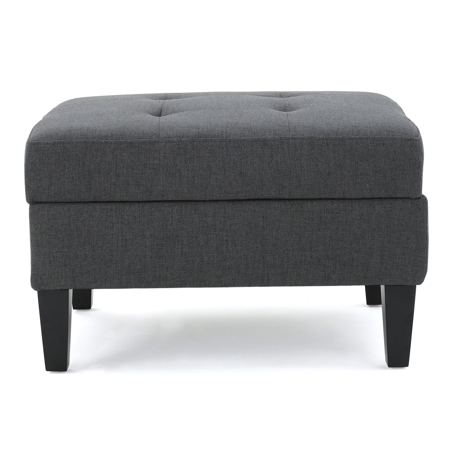 Contemporary Storage Ottoman With Tufted Waffle Stitching - Dark Gray