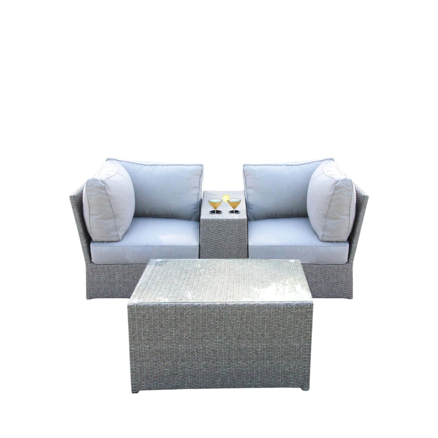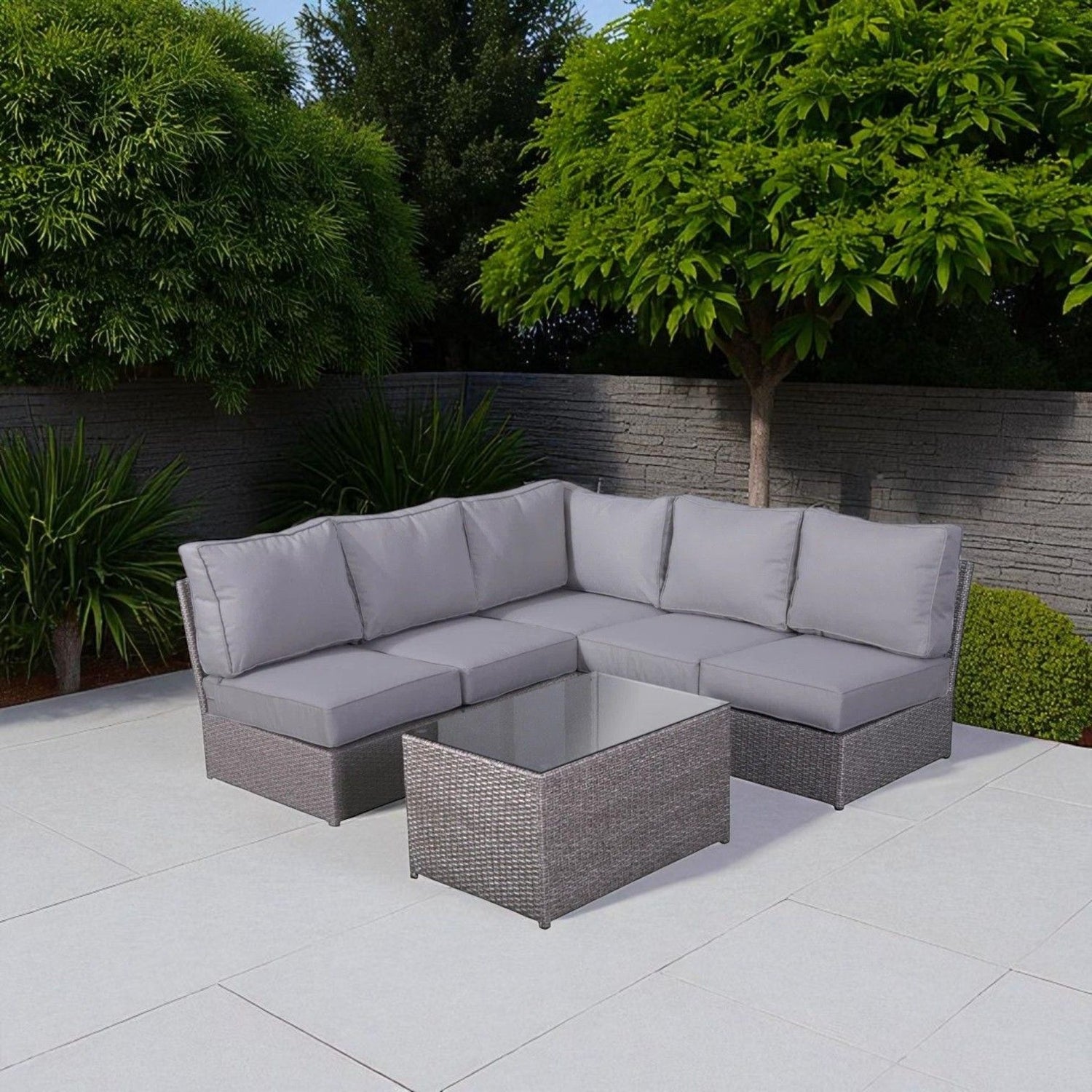Comfortable Modern Patio Rattan Sectional Set With Cushions - Gray / 2 Pc. 7 Seater Symmetrical Sectional, Table is backordered and will ship as soon as it is back in stock.