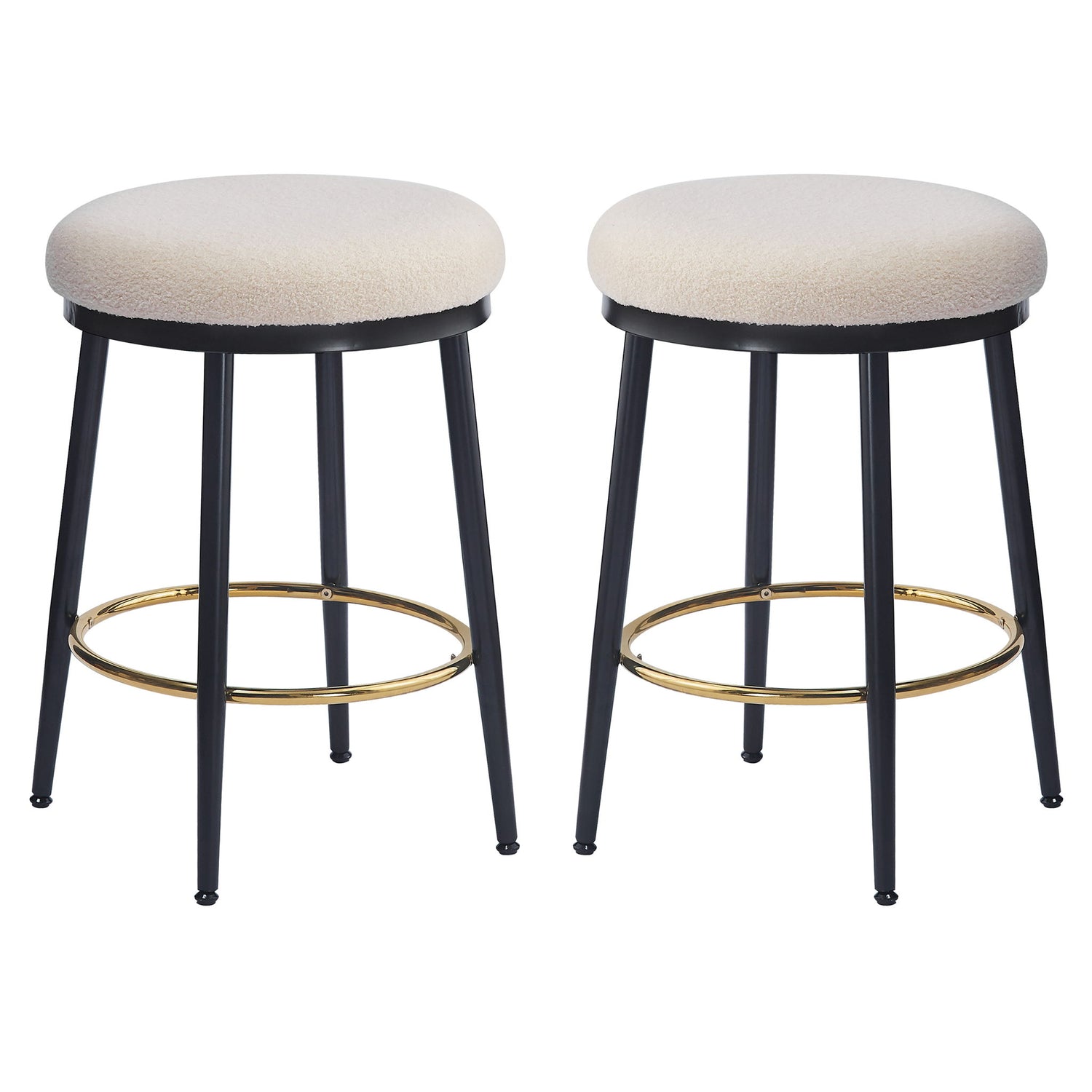 Modern Counter Stools (Set of 2) Counter Stools With Iron Frame, Sponge Cushion, Footrest, Suitable For Kitchen - White