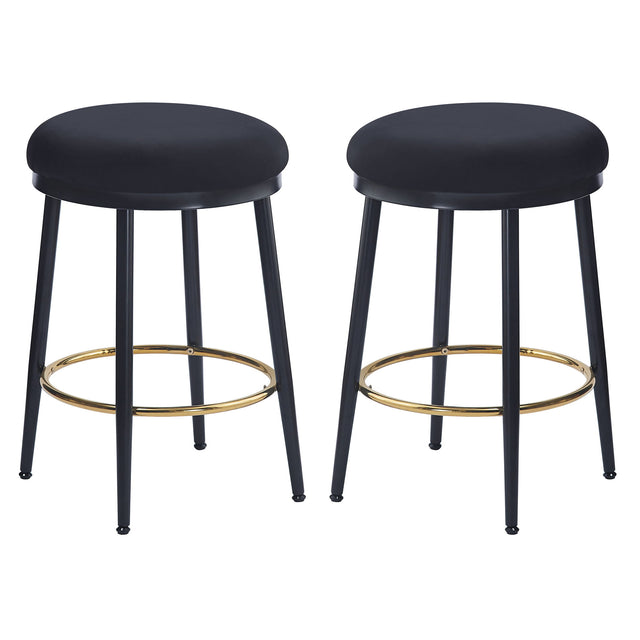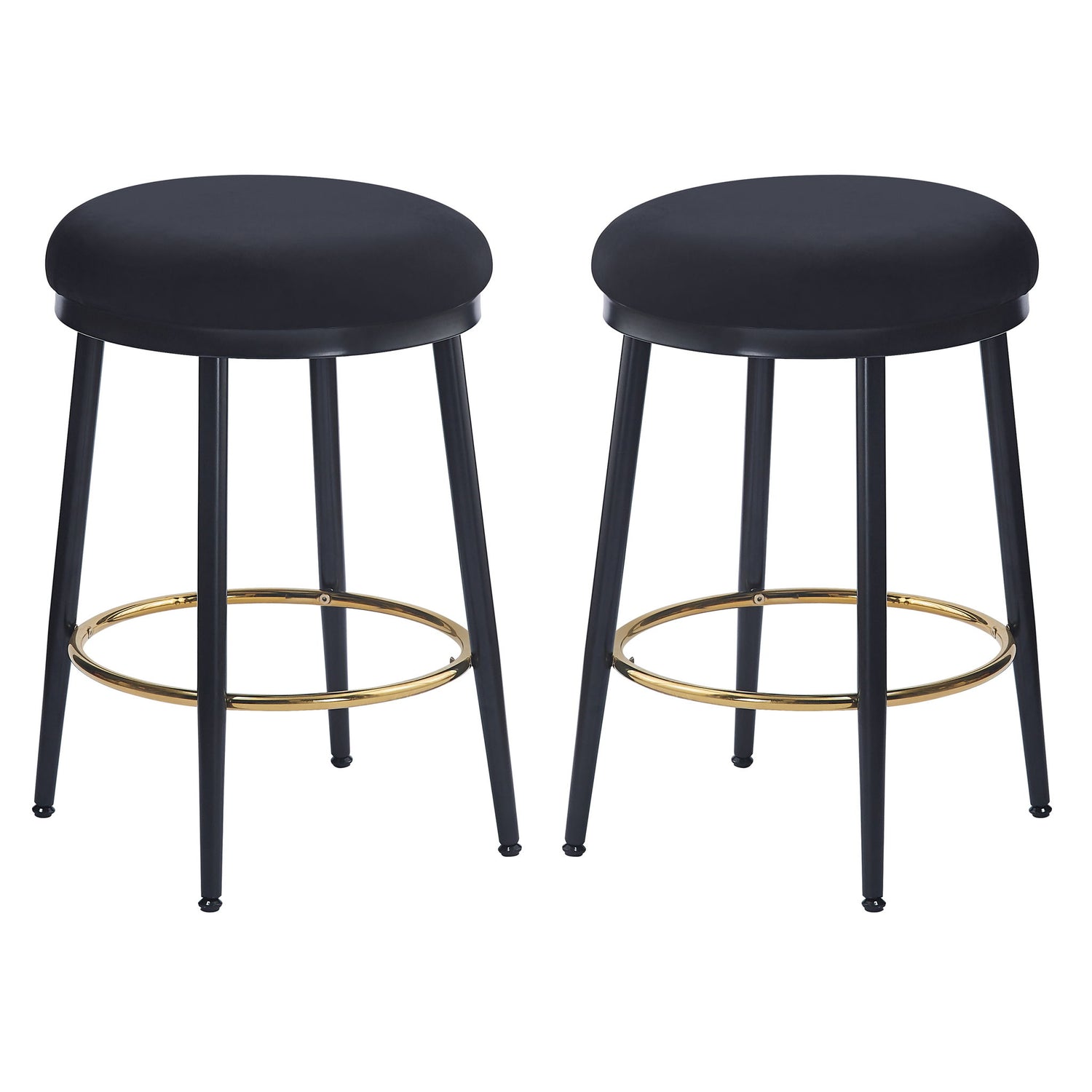 Modern Counter Stools (Set of 2), Counter Stools, Sponge Cushion, Footrest, Suitable For Kitchen / Bedroom / Dining Room - Black