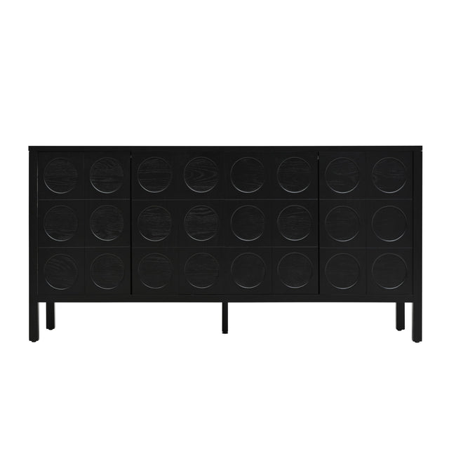 Stylish Storage Cabinet Sideboard With Unique Geometric Circle Door Design - Black