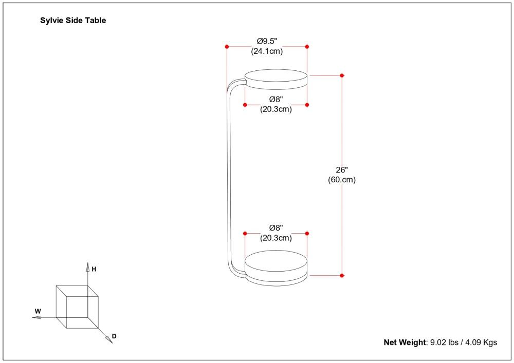 9.5"W x 9.5"D x 26.0"H - 9.0 lb