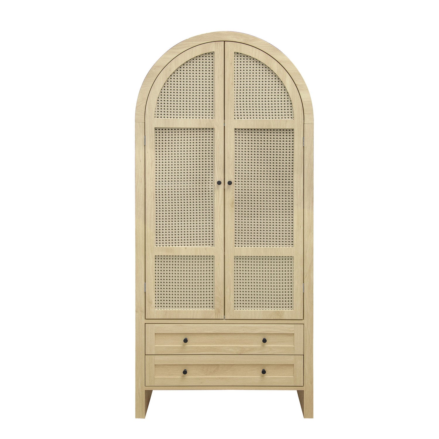 Tall Arched Kitchen Pantry, Arched Storage Display Cabinet With 2 Drawers & Adjustable Shelves, Rattan Door Versatile Storage Cabinet For Kitchen, Dining Room, Living Room - Natural