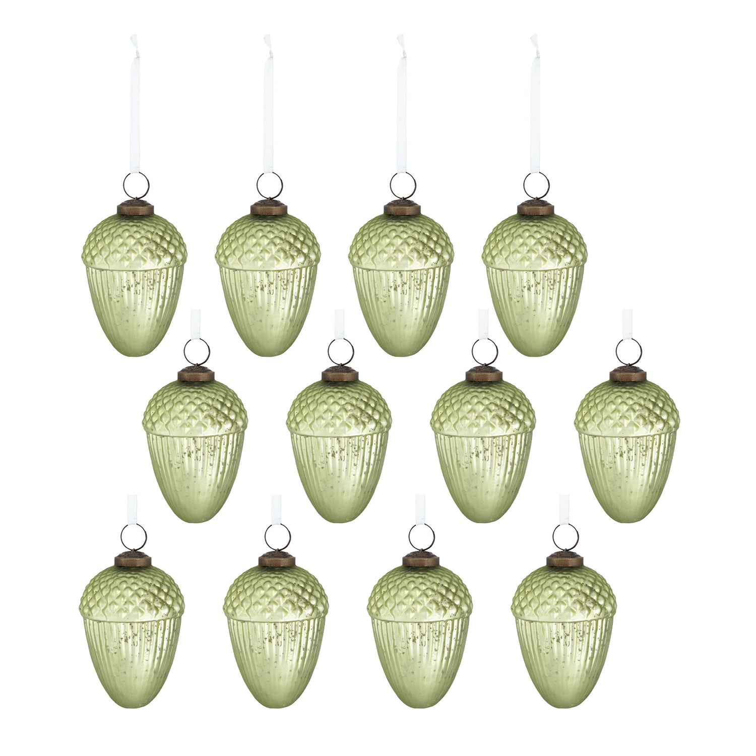 Tear Drop Ornament, Glass Decorative Hanging Christmas Tree Ornaments For Holiday Party Decorations (Set of 12) - Green