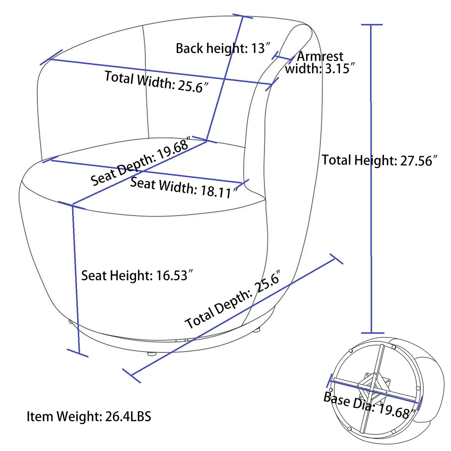 Teddy Fabric Swivel Accent Armchair Barrel Chair With Powder Coating Metal Ring