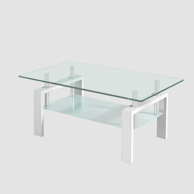 Luxury Modern Tempered Glass Coffee Table With 2 Layers And Solid Frame For Living Room - Transparent