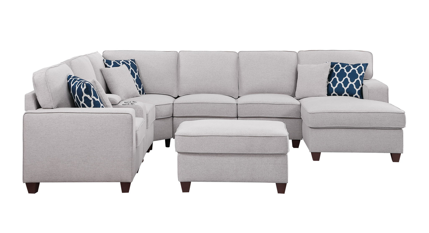 Tina - 8 Piece Upholstered Sectional With Ottoman - Light Gray