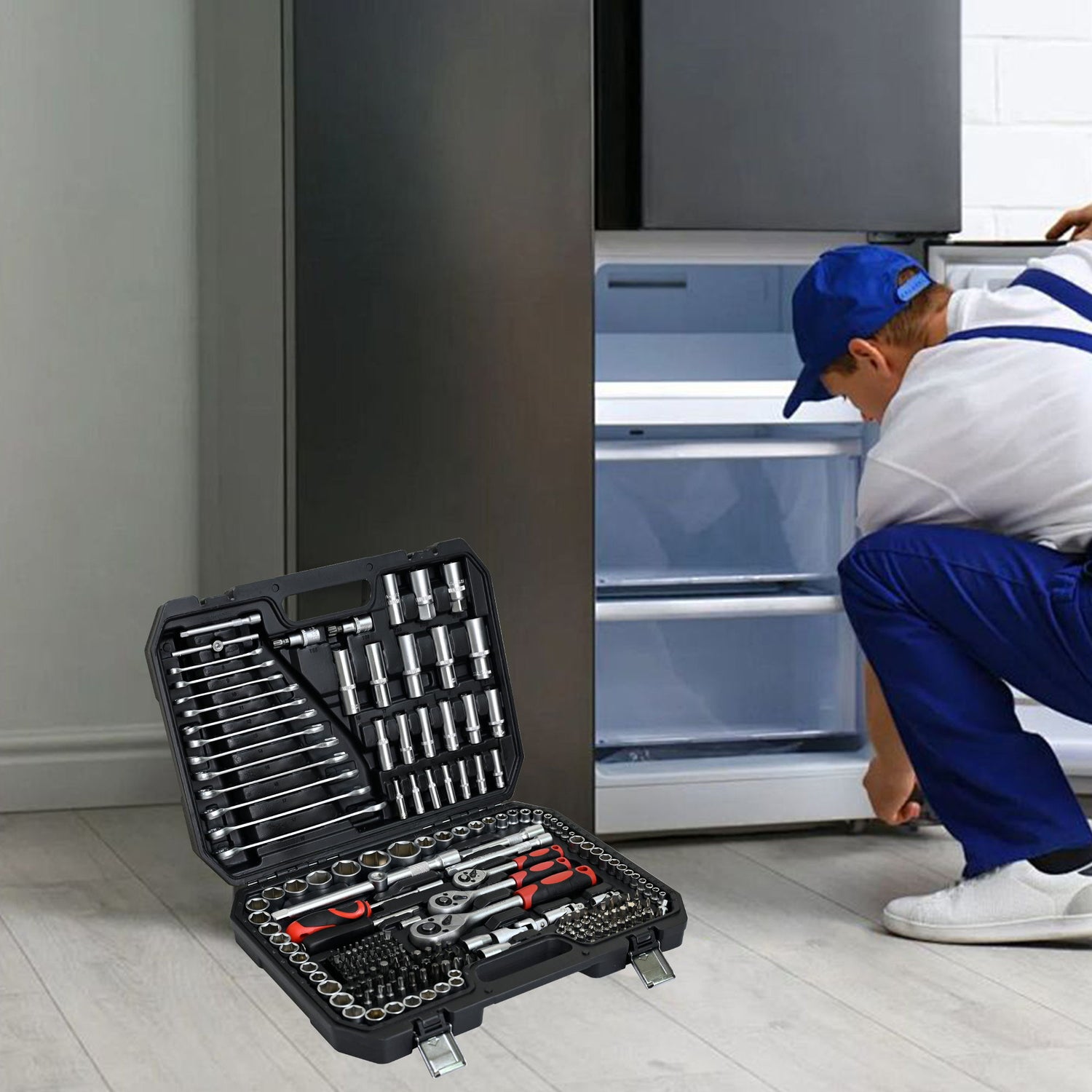 - Portable and Secure Design: Compact and lightweight with a lockable case, this toolbox is easy to carry and ensures your tools are kept safe and organized wherever you go.