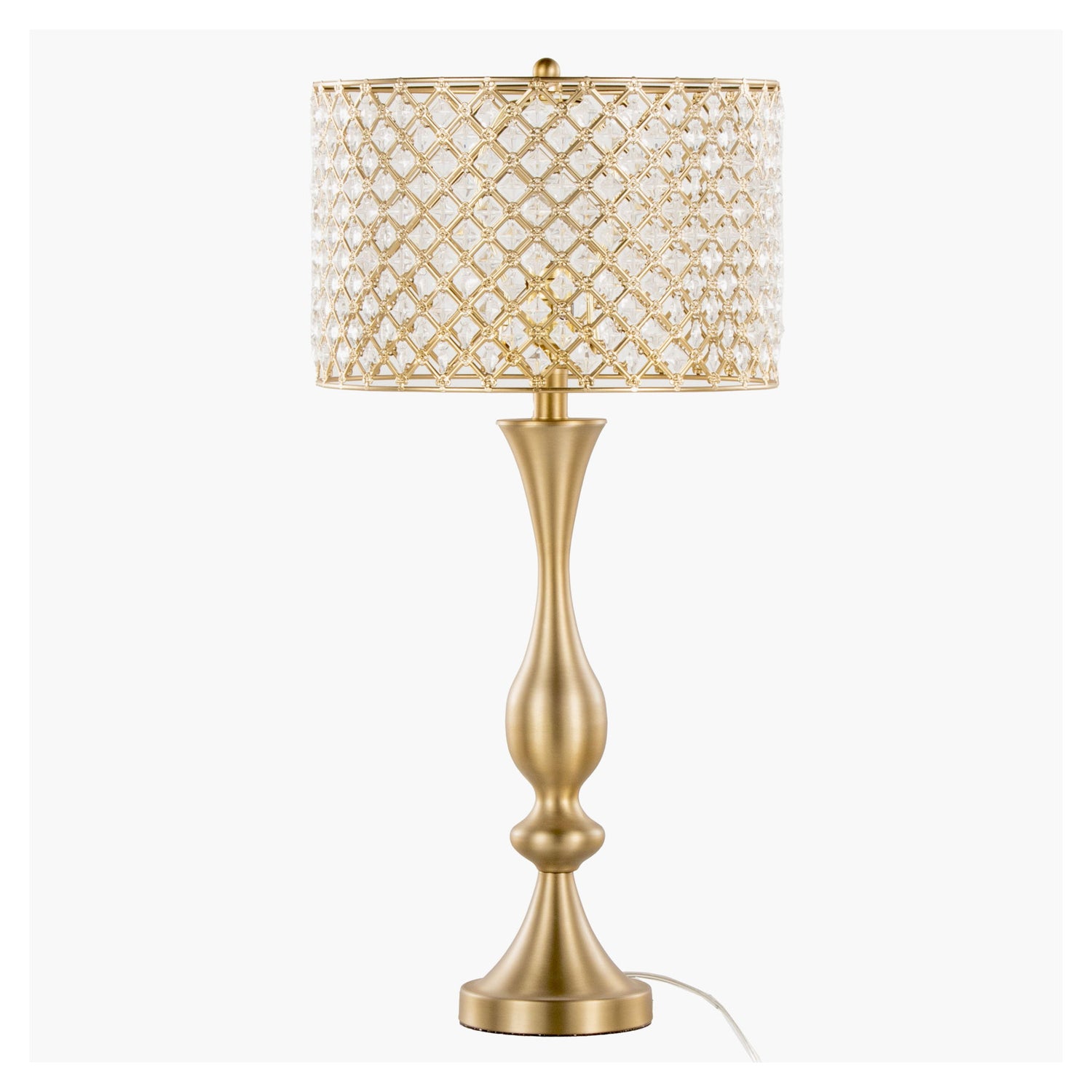 - Crystalline Shade: Topped with a crystalline metal shade, this lamp casts a radiant display of cascading patterns, adding a touch of glamour to your living spaces.