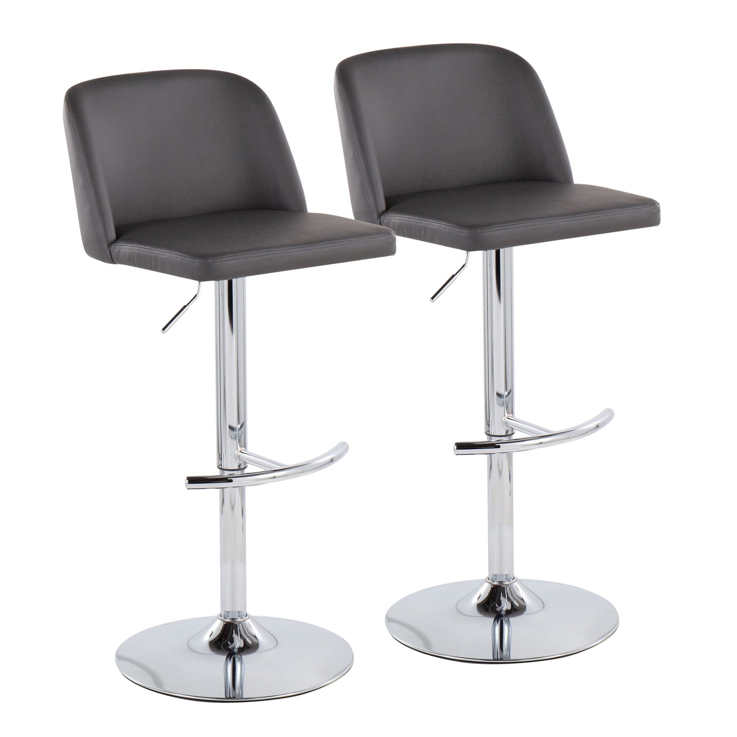 Toriano - Contemporary, Adjustable Barstool With Swivel With Rounded T Footrest (Set of 2) - Gray / Chrome