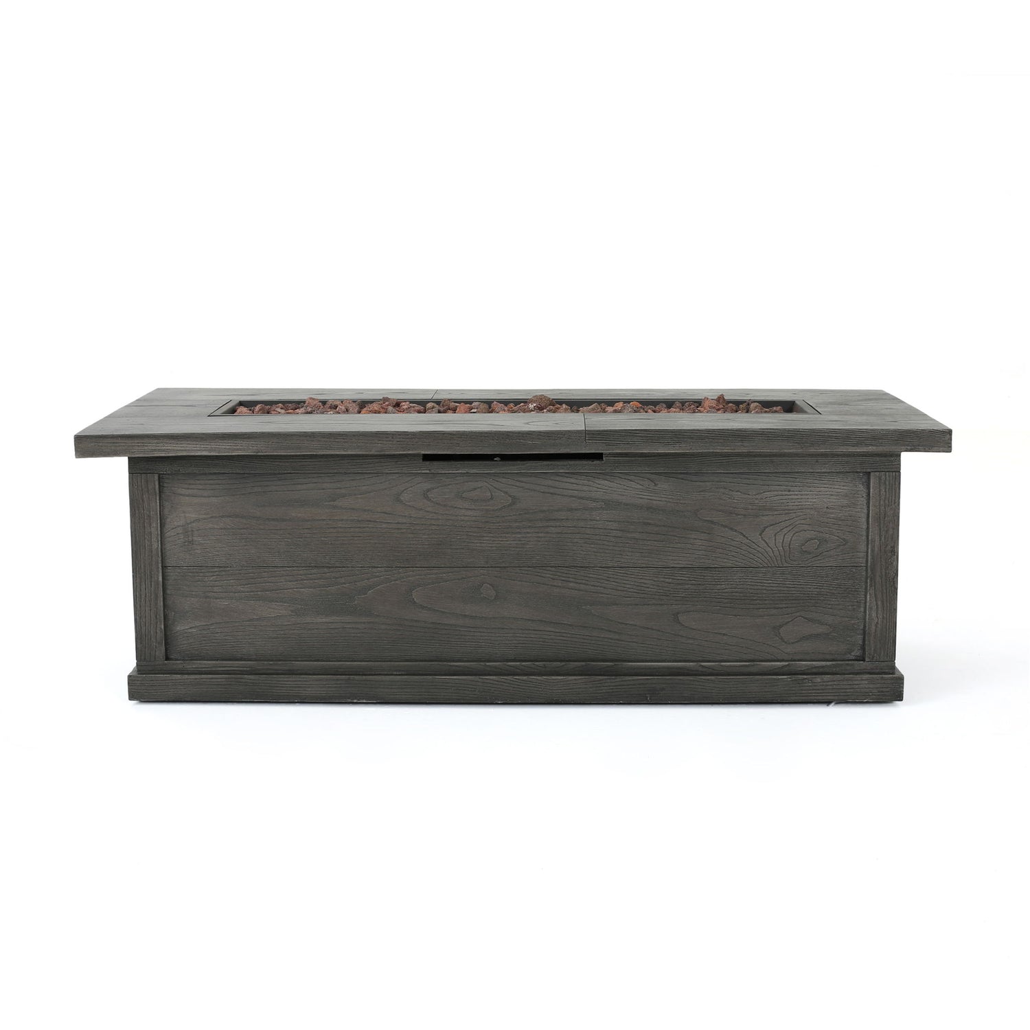 Transitional Rectangular Outdoor Propane Fire Pit With 50, 000 Btu, Tank Cover Not Included - Brown Wood Pattern