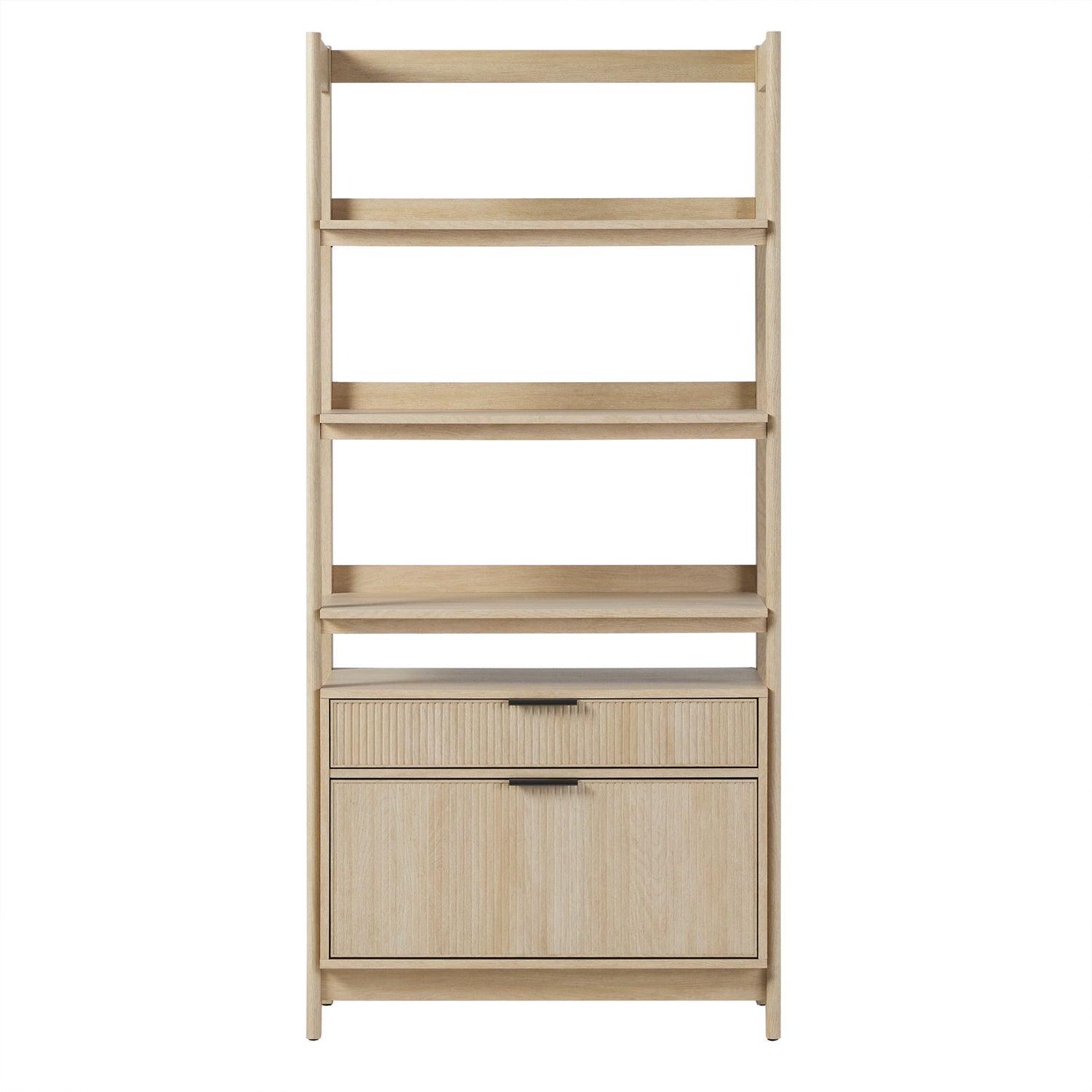 Transitional Wide Reeded Bookshelf With Drawers On Bottom - Oak