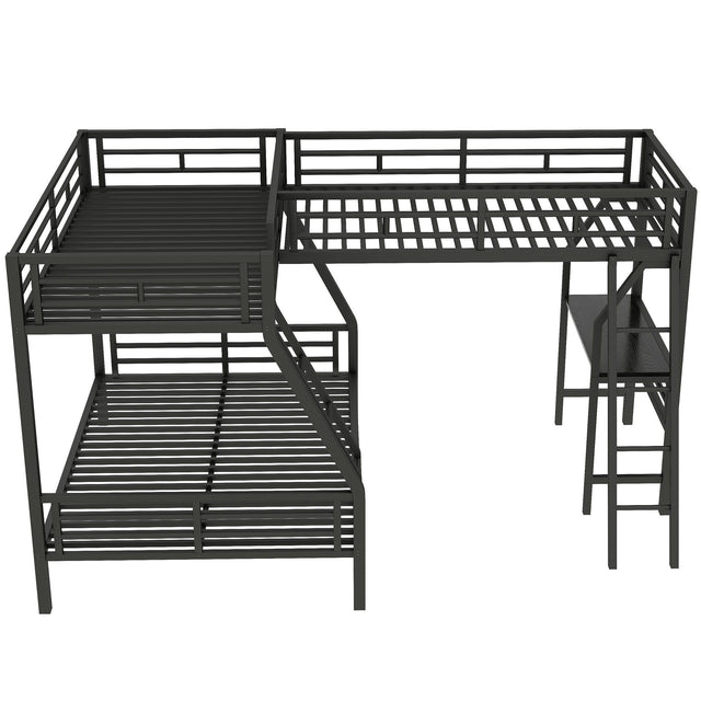 Twin Over Full Bunk Bed With Loft And Desk, L-Shaped Design For 3 Sleepers - Black