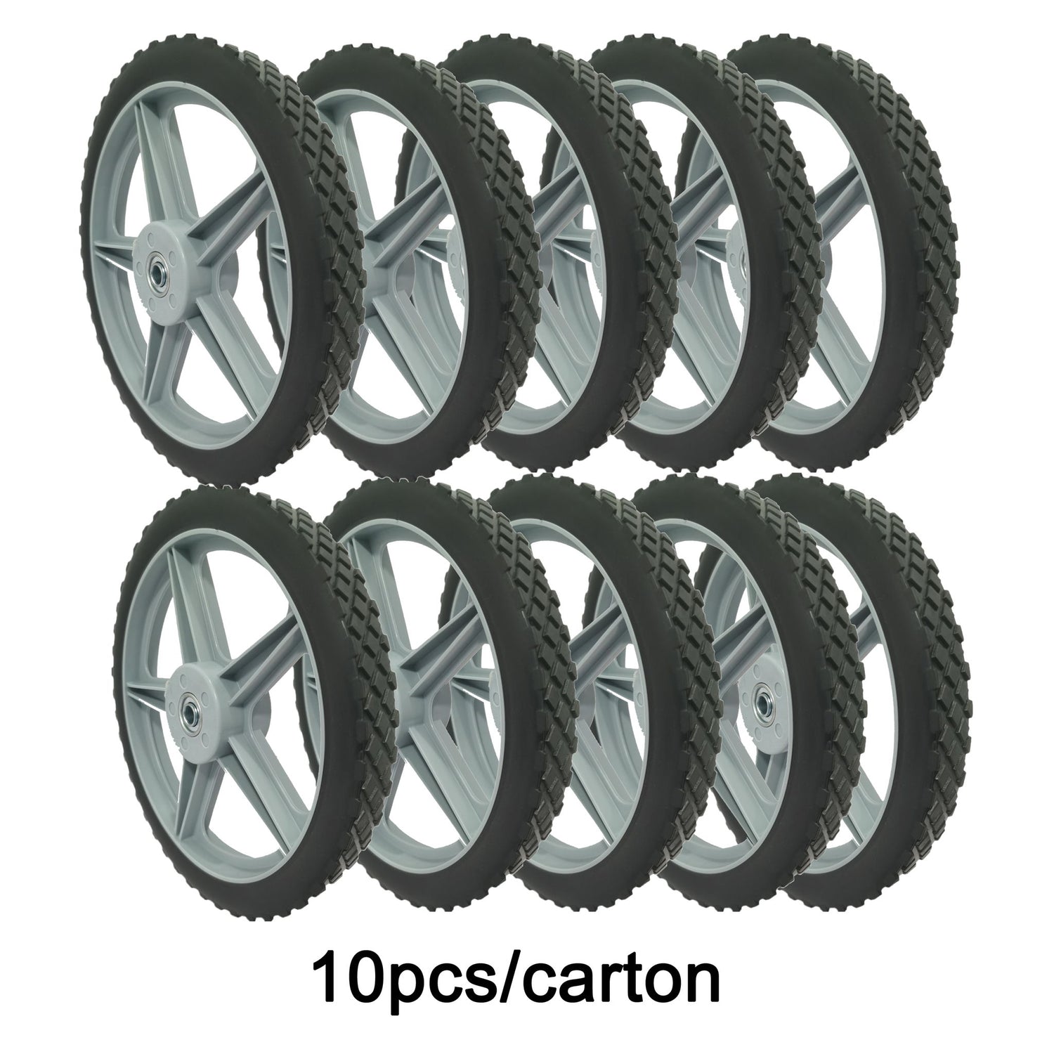 Universal 12" Spoked Plastic Wheel And Tire For Lawn Mowers & Trolley Carts, 10 Pack - Black
