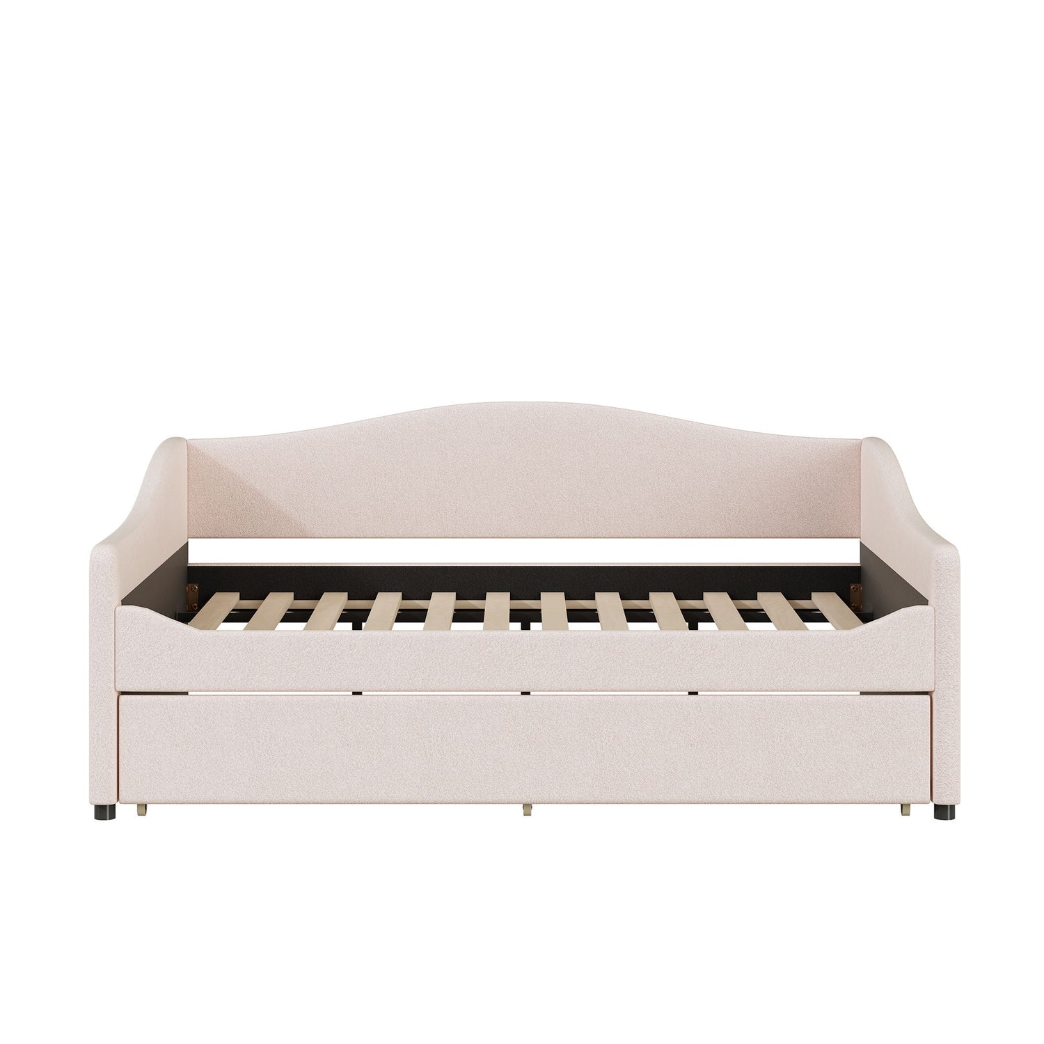 Full Size Upholstered Daybed With Light And Trundle - Beige