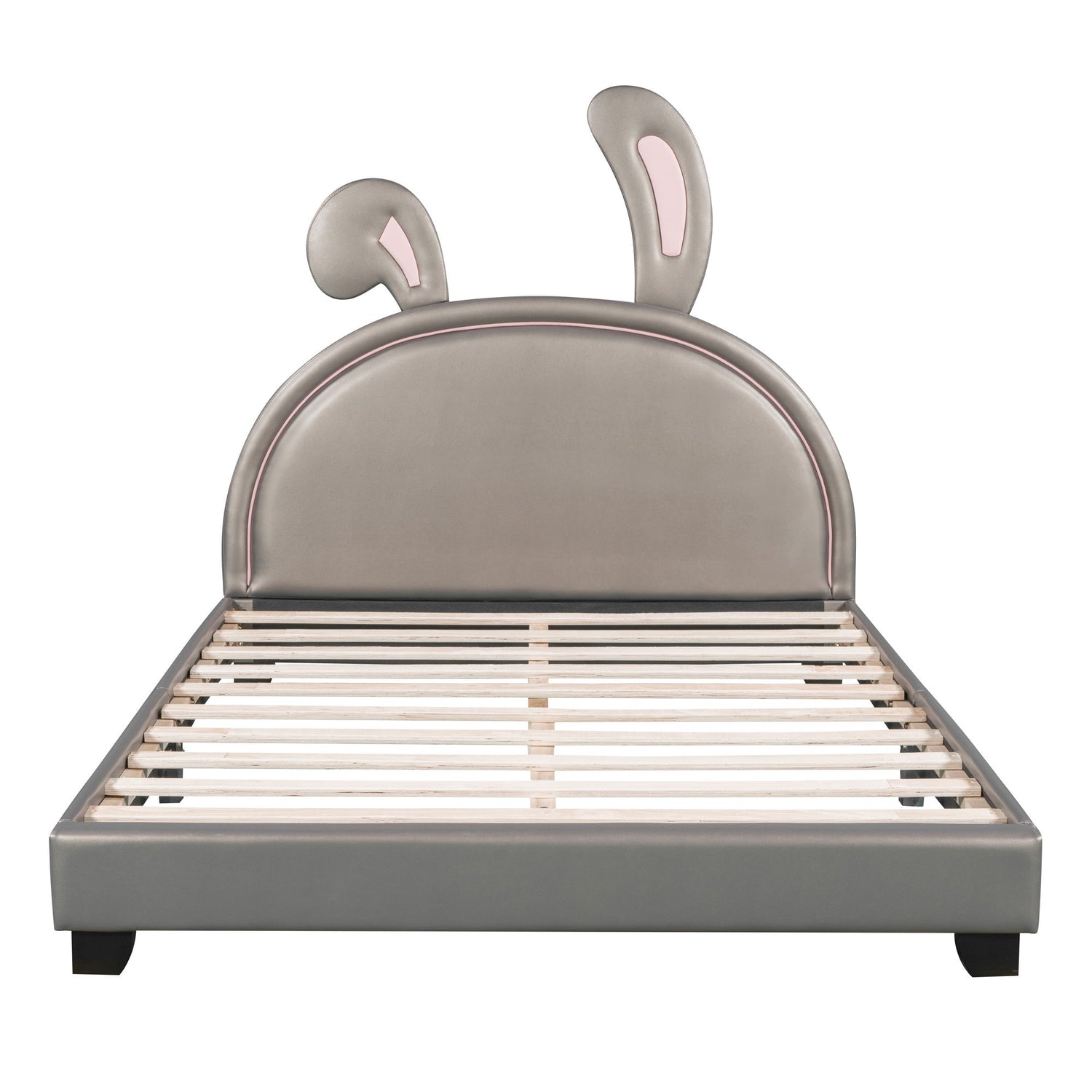 Full Size Upholstered Leather Platform Bed With Rabbit Ornament - Gray