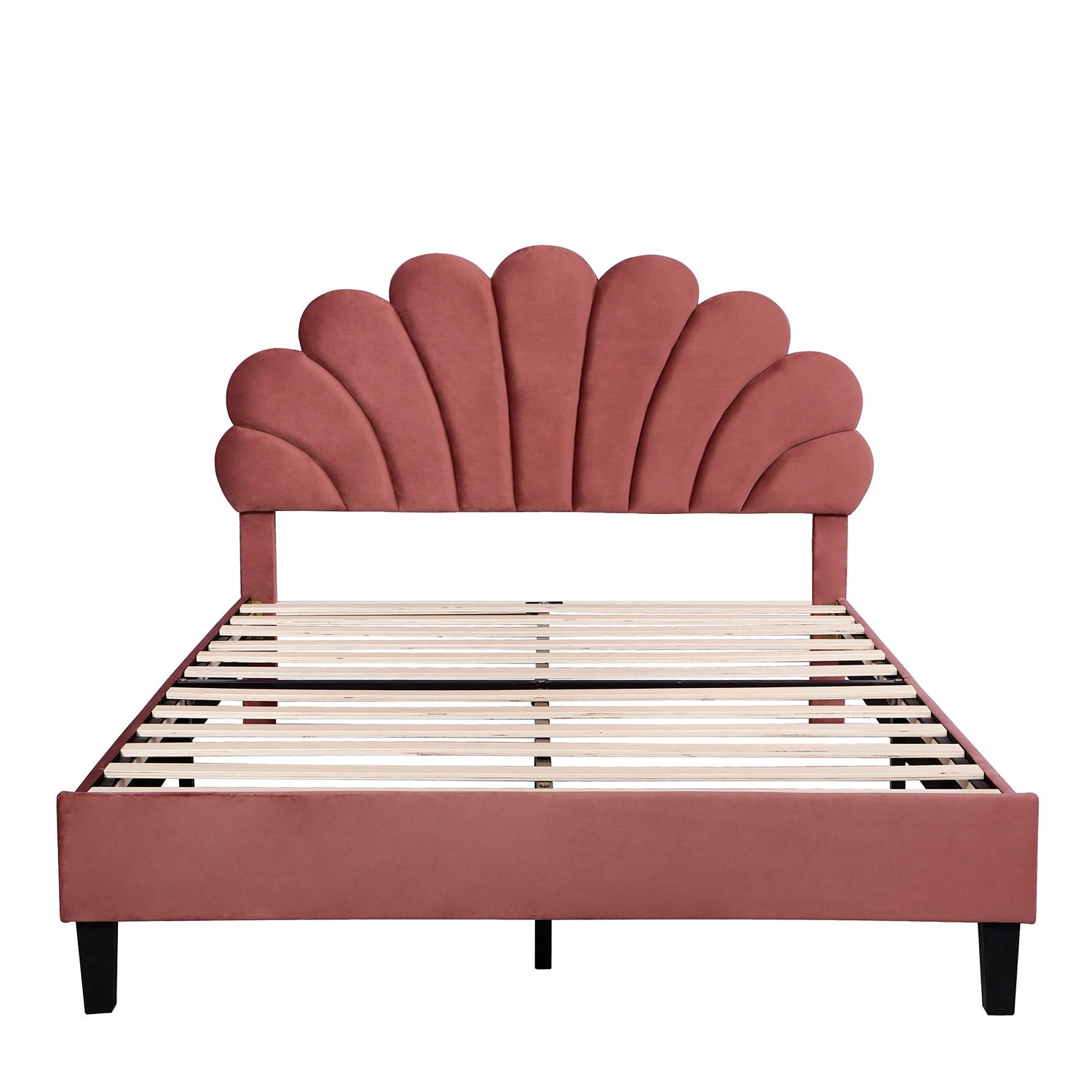 Eye-catching Design: With the design of a flower pattern velvet headboard, this upholstered platform bed brings artistic and warm atmosphere to your home.This bed provides a fun and adorable place for you to enjoy yourselves which makes you feel easy and comfortable.