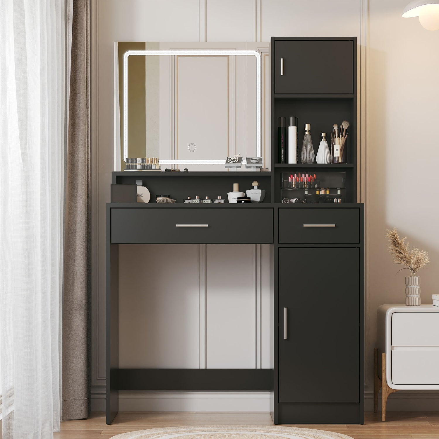 Vanity Desk With Mirror And LED Light Strip, Dressing Table With Large Drawer, 3 Level Storage Dresser & 3 Lighting Modes Adjustable Brightness, Suitable For Bedroom - Black