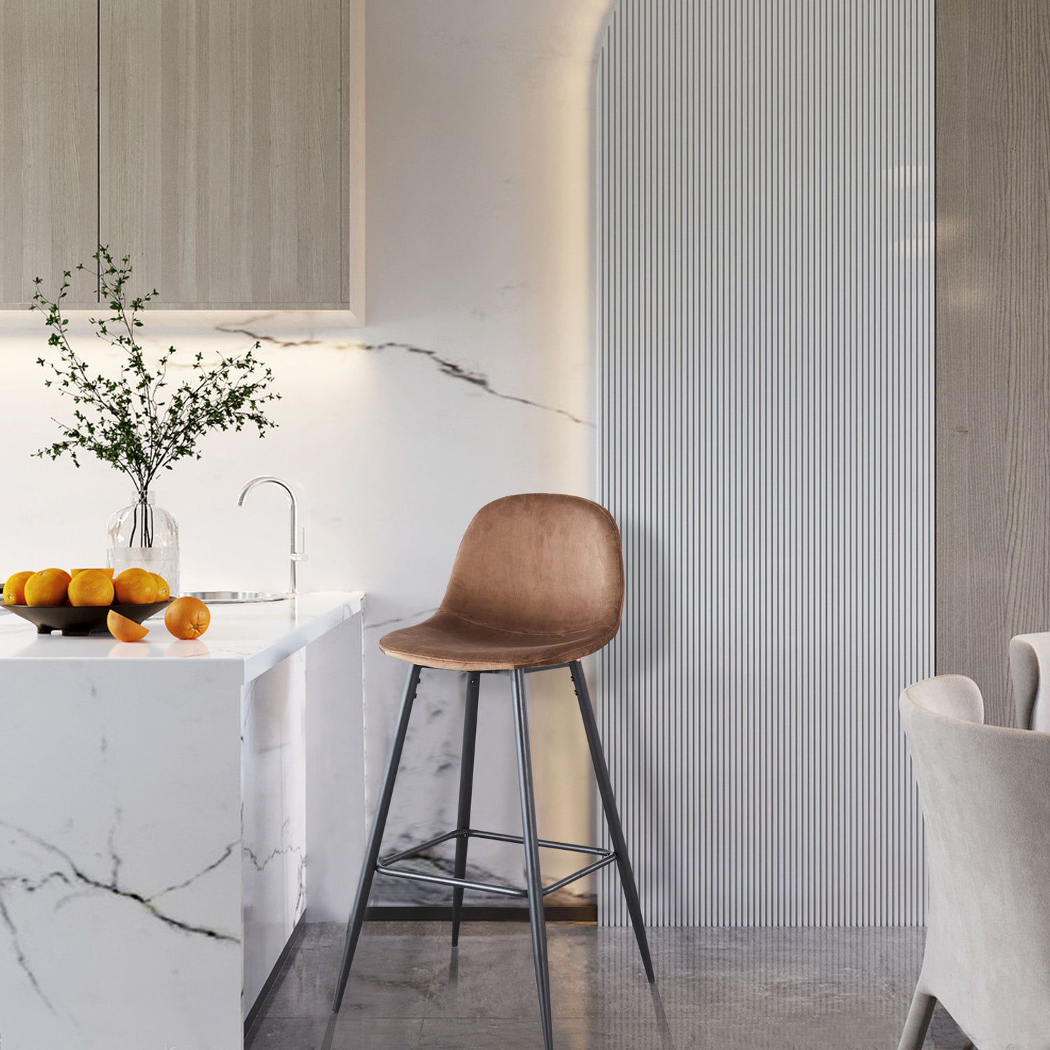 Velvet Barstool With Back (Set of 2)