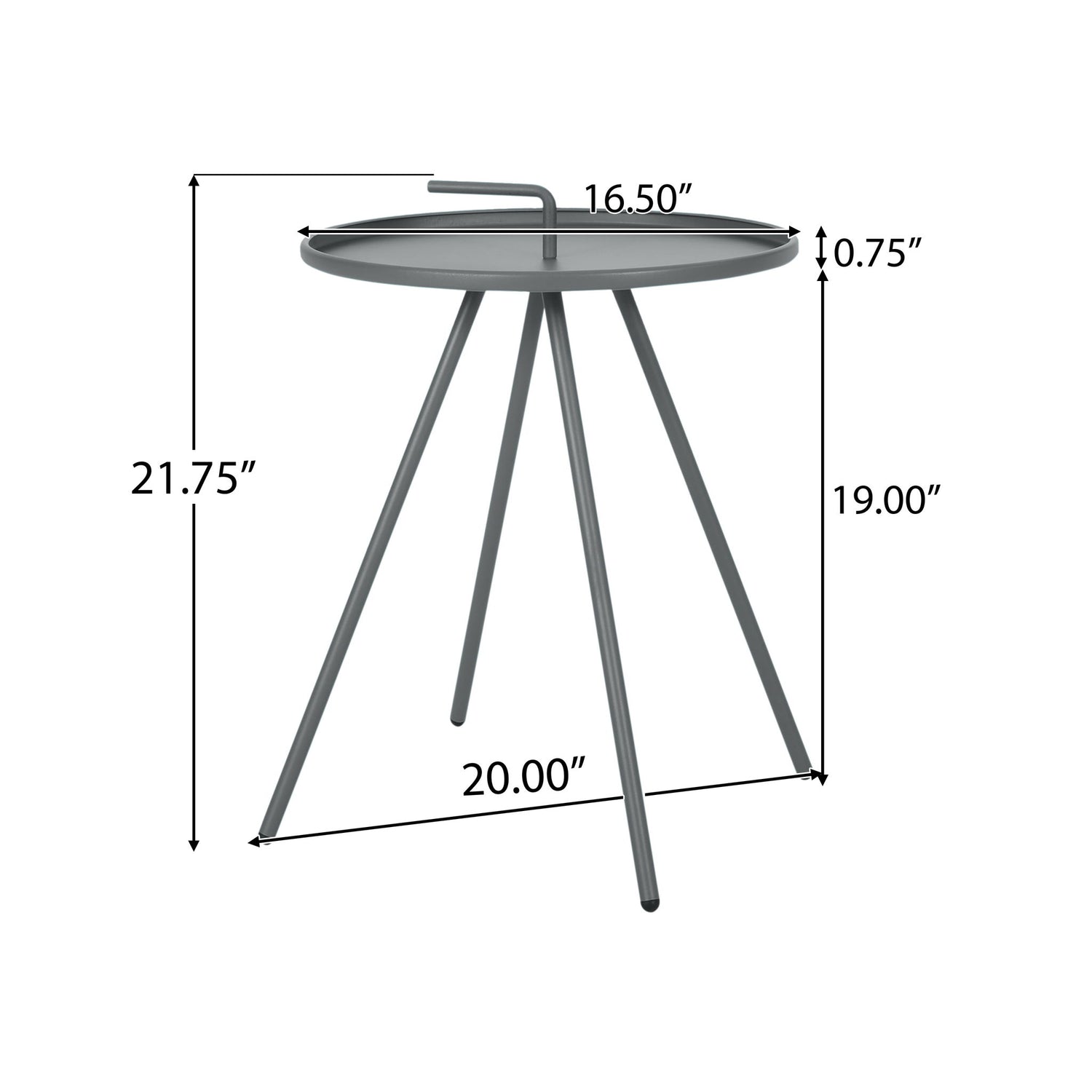 - Modern Design: The side table features a modern aesthetic with its circular design, bold, straight legs, and clean lines. Its distinctive look is further enhanced by a carrying handle and four angled legs that contrast beautifully with the circular tabletop.