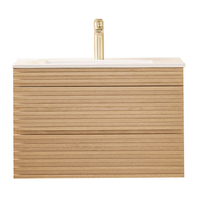 Wall Mounted & Floating Single Vanity With Ceramic Sink - Natural Walnut