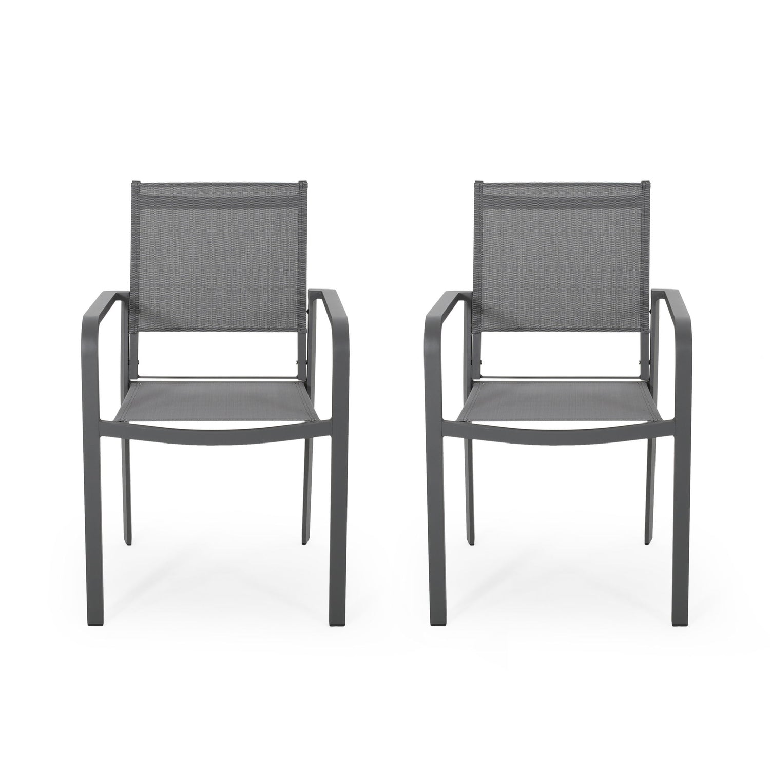 Waterfal - Outdoor Aluminum Dining Chair With Mesh Seat (Set of 2) - Dark Gray
