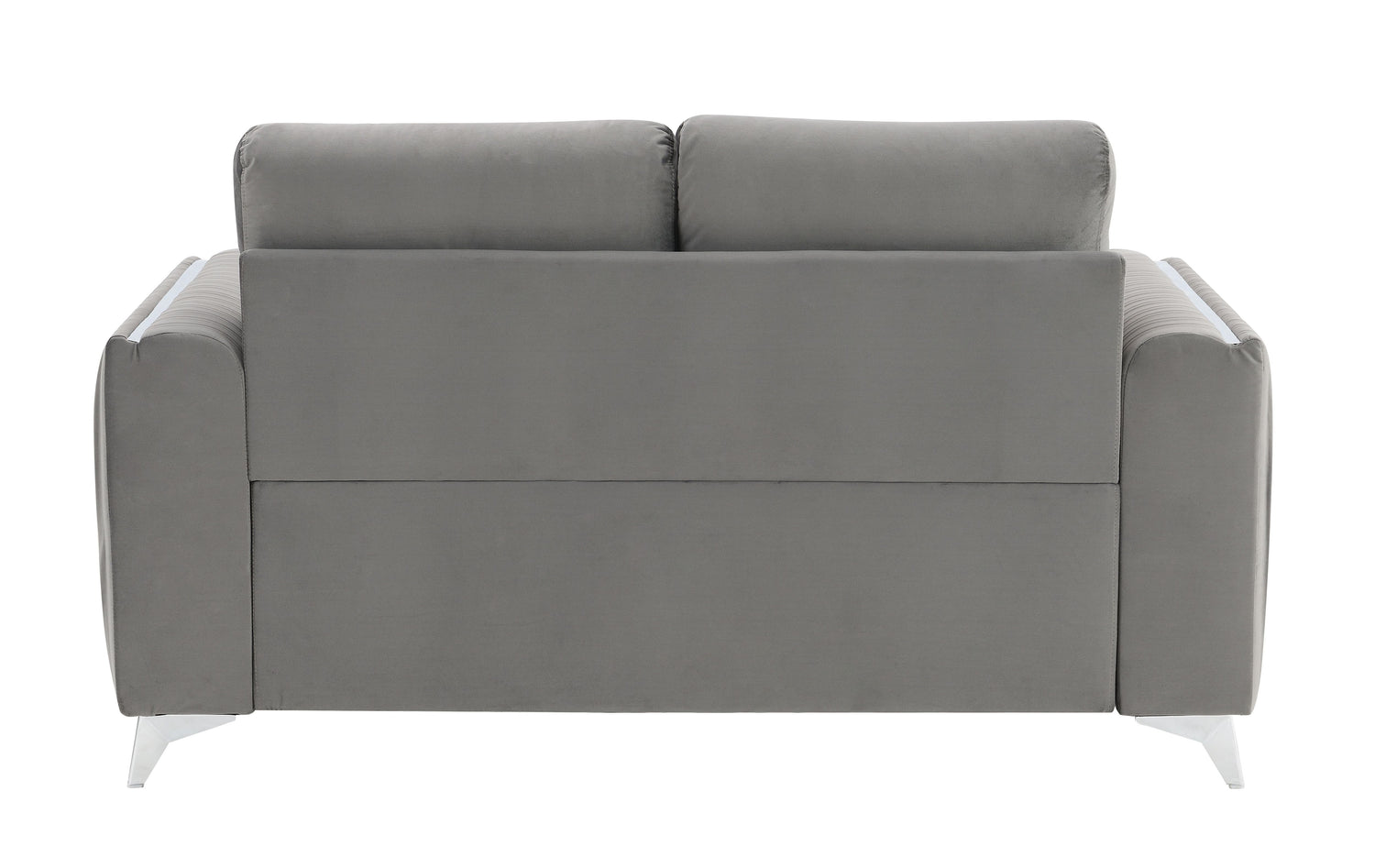 - Modern Elegance: This velvet loveseat showcases modern elegance with its unique vertical 3D effect on the armrests, adding texture and sophistication to the design.