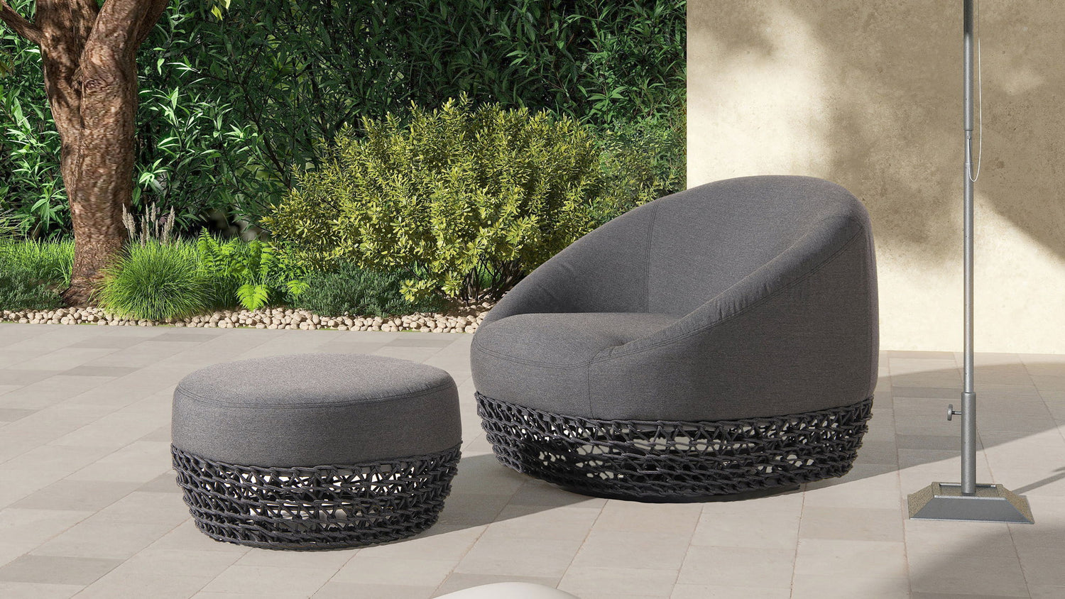 Willow - Round Upholstered Patio Ottoman - Graphite Gray / Black