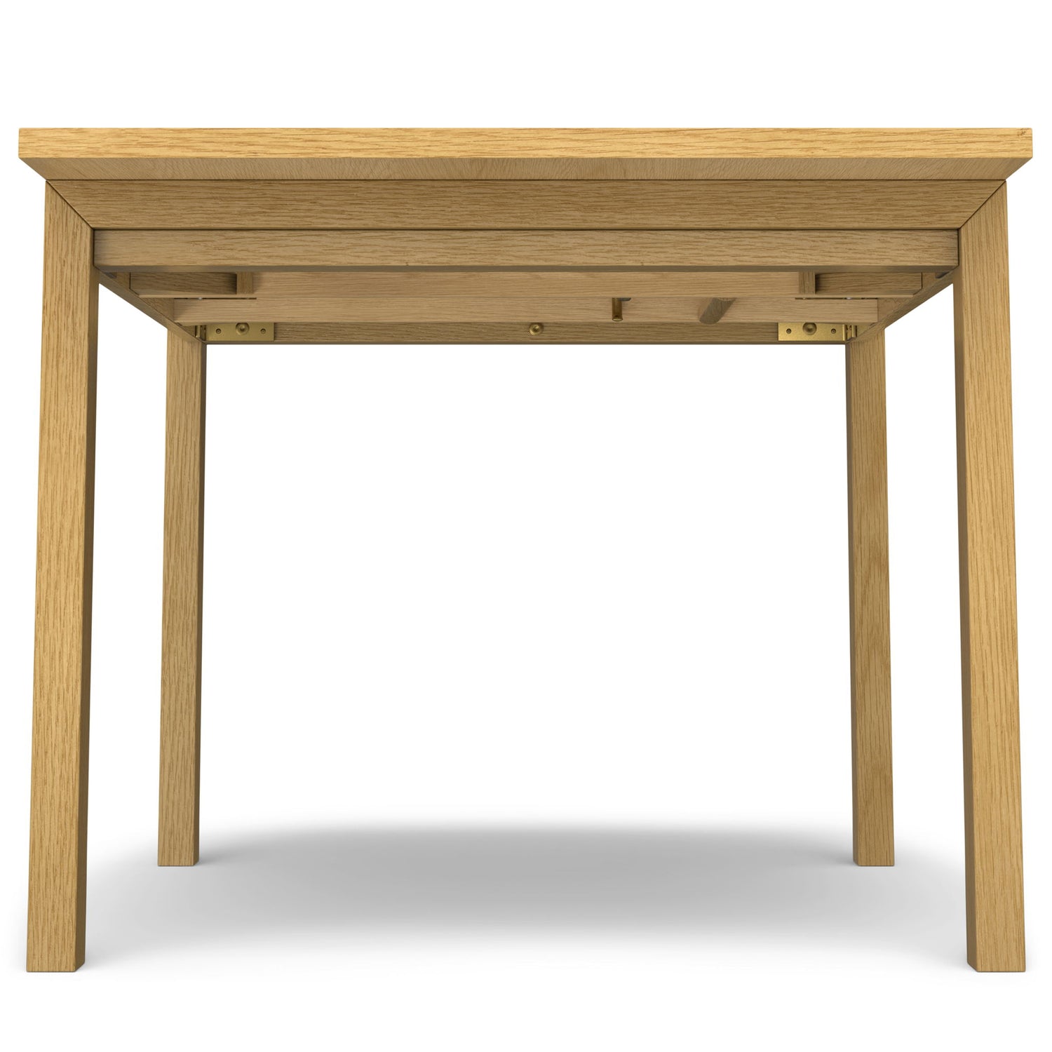 Supporting the tabletop are thick, straight, solid wood legs and an inset table apron that adds a refined touch.