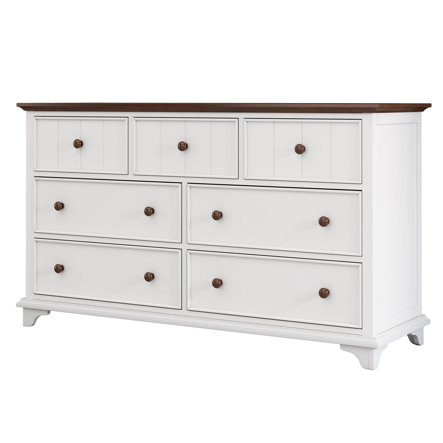 Wooden Captain Seven Drawer Dresser For Bedroom, Living Room, Kids' Room - White / Walnut