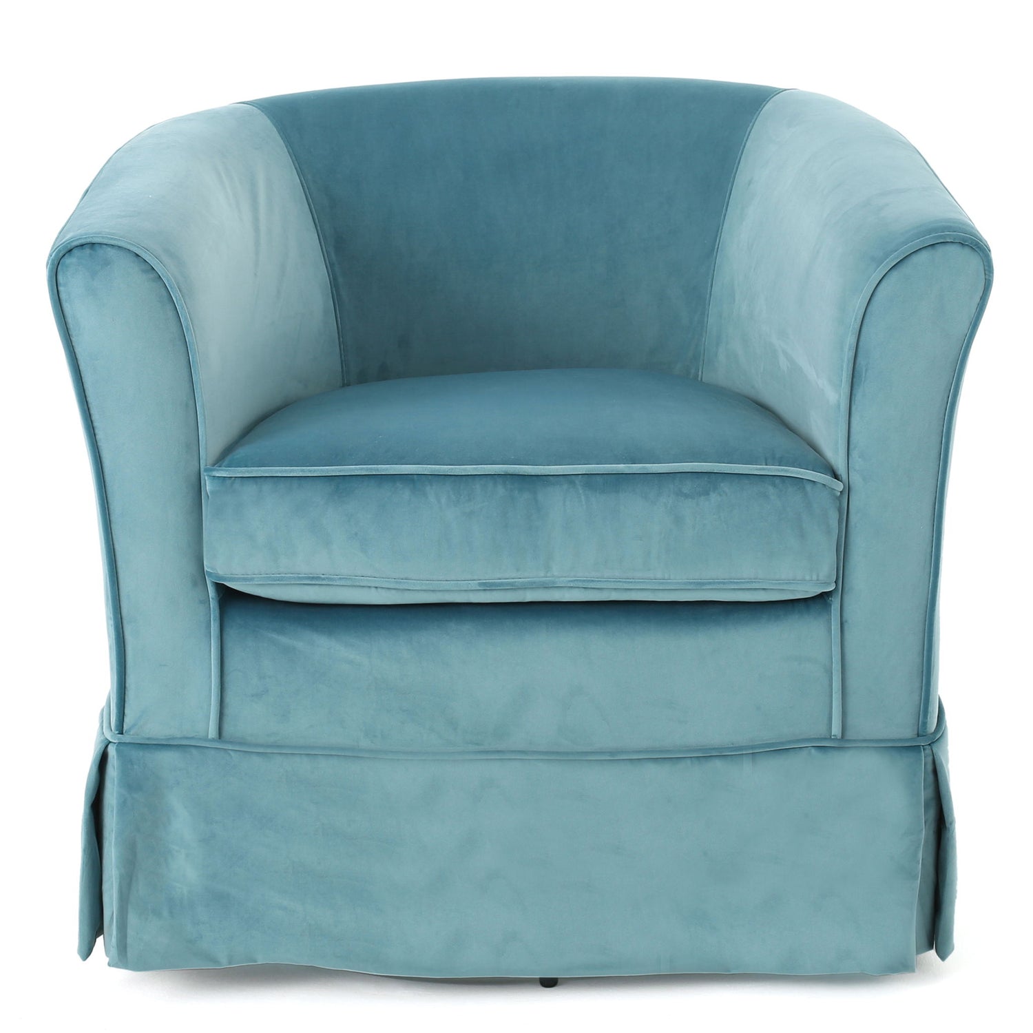 Zeniqua - Upholstered Velvet Swivel Chair With Loose Cover - Blue