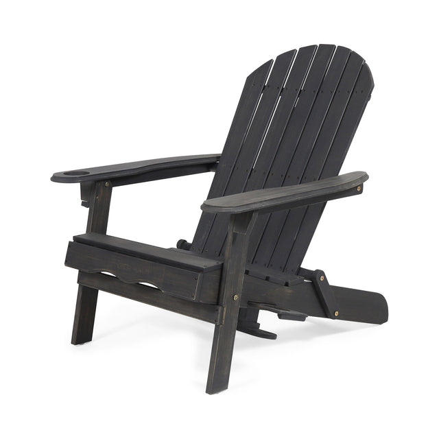 Zenithia - Outdoor Foldable Adirondack Chair With 2 Cup Holders - Dark Gray