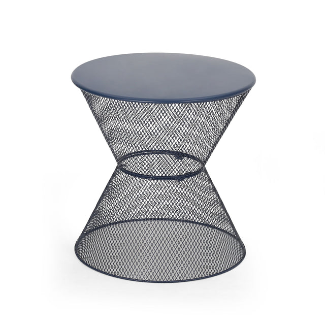 Zine - Outdoor Side Table With Hourglass Shaped And Iron Frame - Navy is backordered and will ship as soon as it is back in stock.